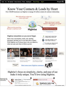 Firma Highrise na swojej stronie internetowej posiadała krótką ofertę przedstawioną w tradycyjnej formie tekstu wraz z rysowanymi obrazkami i małymi zdjęciami. Wyglądało to dość chaotycznie (zobacz screen poniżej).