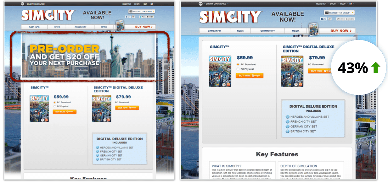 Zmiana spowodowała wzrost liczby zamówień o 43,4%. Nawet tak duża firma jak EA, która zarabia miliony dolarów na swoich grach, myśli o tym, jak zwiększyć liczbę Klientów. Dlaczego Ty nie pójdziesz ich drogą?