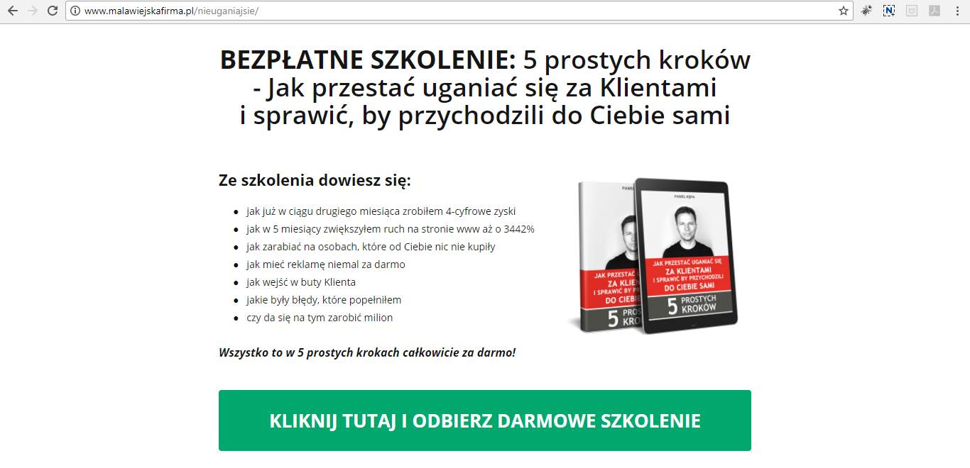 Na samym dole jest oczywiście zielony przycisk, w którym po raz kolejny powtarzam, że szkolenie jest darmowe.